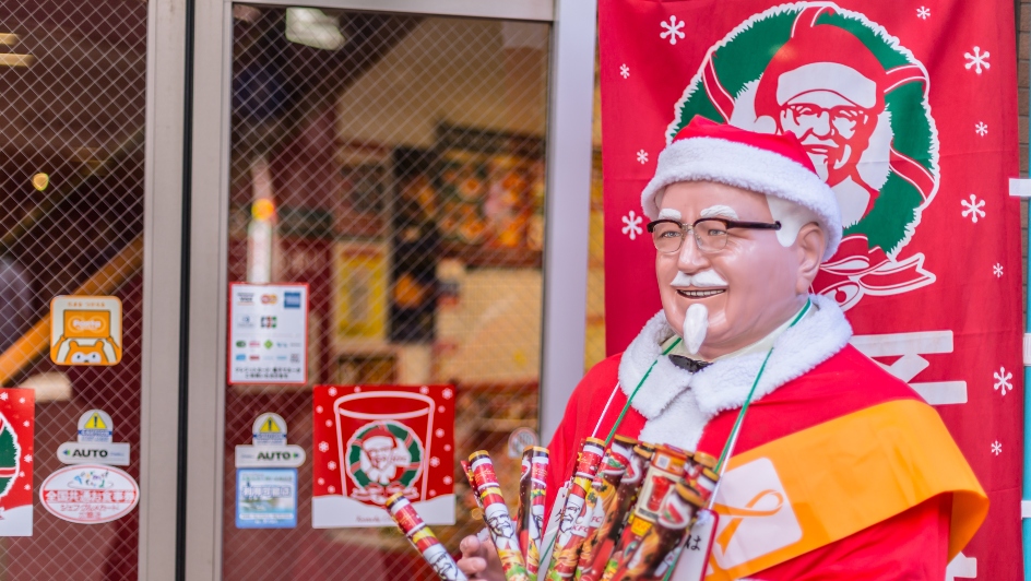 These days, many Japanese families look forward to celebrating their day together with a giant bucket of deep-fried poultry. The fast-food outlet is reportedly so popular that many people place their orders well in advance to avoid standing in long queues on the day.