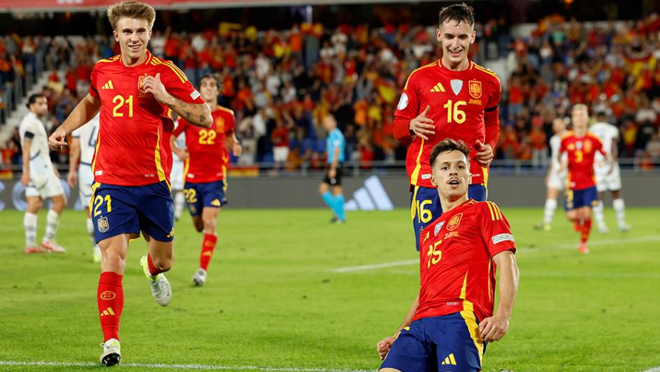 The match started with a high tempo as both teams sought to assert their dominance early on. In the 32nd minute, winger Yeremy Pino right-footed a shot into the centre of the goalbox, giving the Spaniards a 1-0 lead.